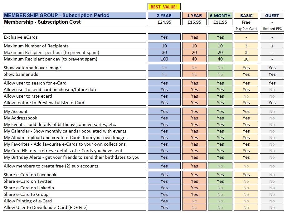 You can sign up to become a subscribed member of our eCards site for periods of 6 months, 1 year, or 2 years. This is by far the most cost-effective way of using our site to send cards. That's because you will have access to all our eCards in all card categories, with and without digital jigsaws, and apart from your subscription cost, all cards are "free". Subscribing members are also provided with a set of tools to make life easier: